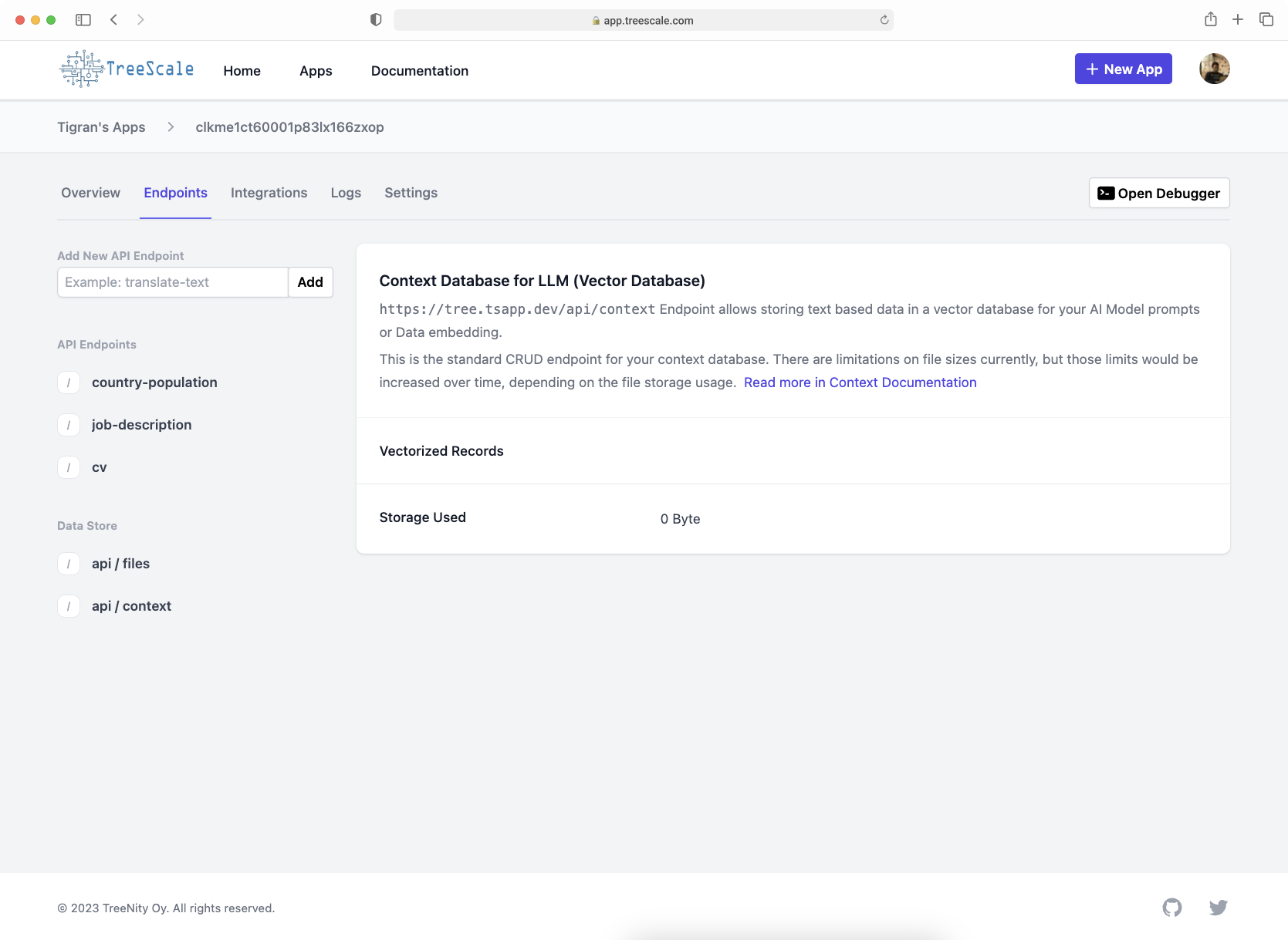 Storing our data in TreeScale App Vectorized Context was a game changer for us. We were able to build our own custom LLM Apps in minutes.